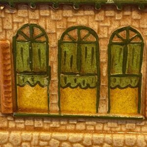 This charming vintage ceramic cookie jar is a wonderful addition to any kitchen. Victorian house design with a San Francisco style. The jar comes with a lid and Measures 7.5” x 4.5” x 3.5”. Ceramic and hand painted in the most charming way. Attention to details.
