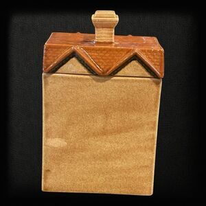 VTG VICTORIAN HOUSE COOKIE JAR 2 STORY SAN FRANCISCO STYLE CERAMIC BROWN 7.5”
