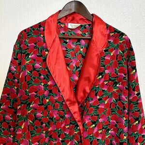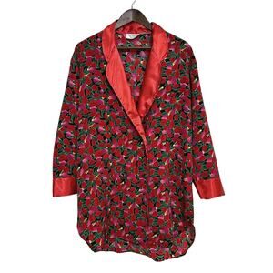 VTG VICTORIA'S SECRET Gold Label Satin Floral Pajama Top Size M Classic Comfort