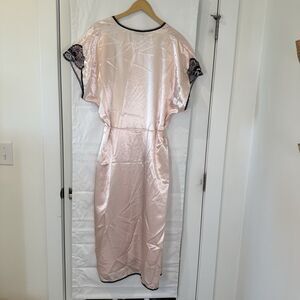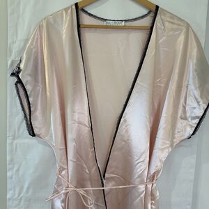 VTG Val Mode Lingerie Robe Women's Medium Pink Silky Satin Lace Belted Sexy