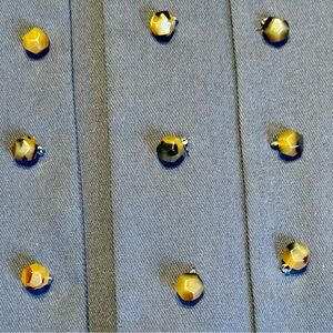 Stunning vintage Valentino Roma Sweetheart Neckline Grey Jacket with gorgeous amber-colored 3D Hexagon Buttons. Like new! It’s has been sitting of my closet for years. Only worn 2x. c. 2003-05