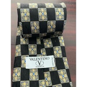 VTG Valentino Silk Necktie Black White Check Regency Wedding Guest Preppy, great condition.