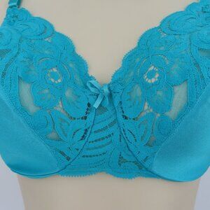 VTG Vanity Fair 32D Bra Style 75-164 Blue Bow Lace Trim Underwire Unlined Women