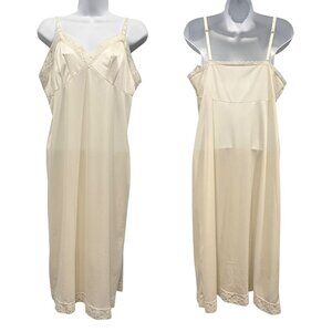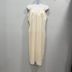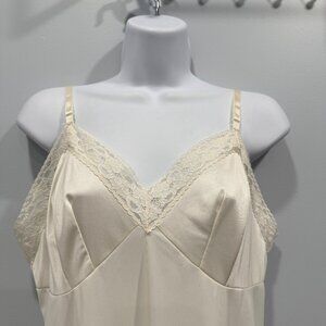 VTG Vanity Fair Baby Doll Slip Dress Satin Lace Ivory Coquette Romantic Size 38