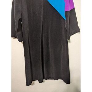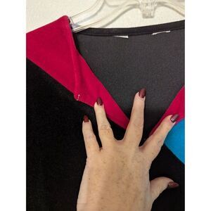 VTG Vanity Fair Color Block Black Zip Velour Robe House Coat Dressing Gown No Sz
