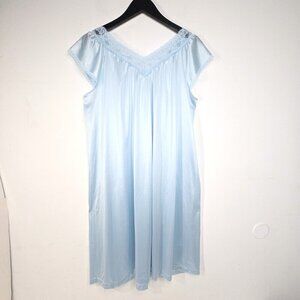 VTG Vanity Fair Light Blue Romantic Lace Nylon Satin Flutter Sleeve Nightgown