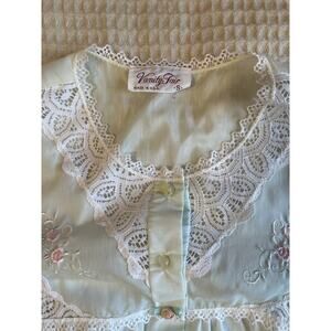 VTG Vanity Fair Light Mint Floral Embroidered W/ Lace Trim Nightgown Mumu Small