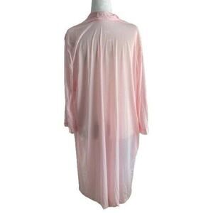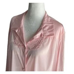 VTG Vanity Fair Pink Robe Women Sz L Lightweight Button Front Floral Embroidery