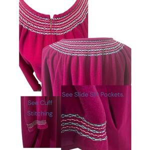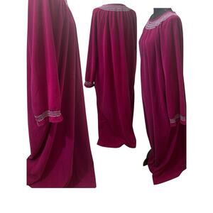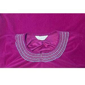 VTG Vanity Fair Red Maroon Wine Velour Zip Front Long Smocked Neckline SZ XXL