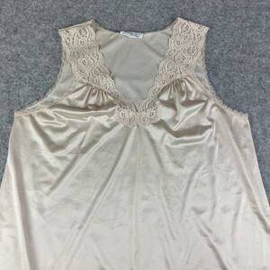 VTG Vanity Fair Slip Dress Womens M Beige Nightgown Sleeveless Lace Made in USA*. Condition is "Pre-owned"