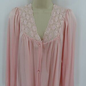 VTG Vanity Fair Women Medium Solid Pink Lace Trim Button Front Nightgown Dress