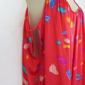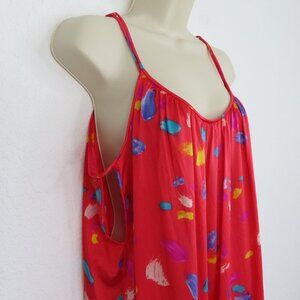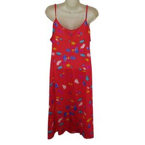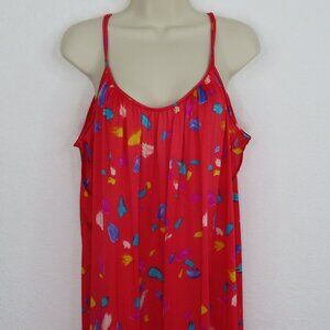 VTG Vanity Fair Womens Medium Red Spaghetti Strap Paint Stroke Nightgown Dress