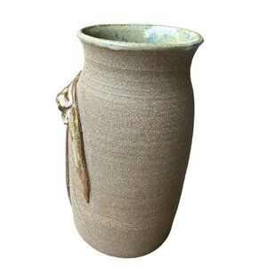 VTG Vase 4.75" Stoneware Pottery Seed Pod Leaves Motif Multicolor Texture Signed