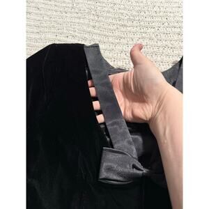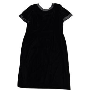 VTG Velour Sheath Dress Short Sleeves Back Bow Cut Outs Knee Length Women's Size Large Fully Lined Black Velvet