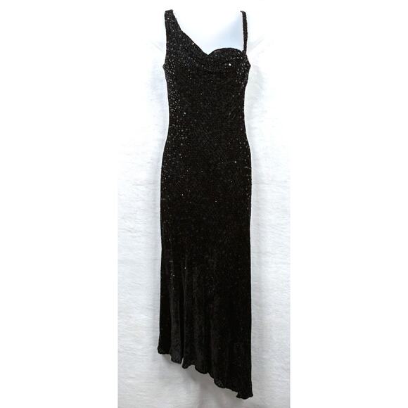 VTG Velvet Hand Beaded Asymmetrical Gown Formal Dress Sequin Special Occasion XS