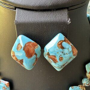 VTG Venetian Turquoise Aventurine Murano Glass Bead Necklace + Earrings 18"
