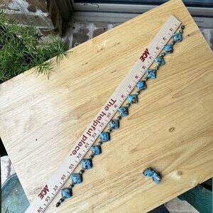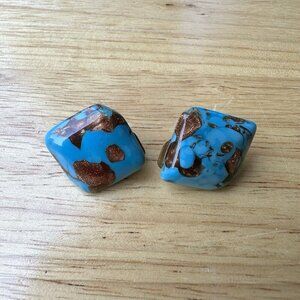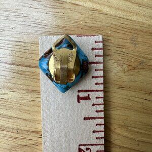 This vintage Murano jewelry set is a stunning addition to any collection. The 18" necklace and matching earrings are handcrafted with beautiful turquoise color and aventurine glass beads by Murano glassworks in Italy, creating a unique and eye-catching look. The set includes both pieces in gold-toned metal and is signed by the artist. This artisan crafted Italian matching 1" earring and 18" necklace set is perfect for women who appreciate beauty, art, and fashion. The handmade turquoise blue copper and gold color glass beads make a positive classy statement, and the vintage design adds a touch of nostalgic charm. This MCM mid century modern set is in good pre owned clean condition with trace use wear and touch of oxidation where the gold plated metal was thin, the clips and barrel clasp function properly. Please review the pictures for more details and size measurement information, thank you.