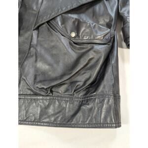 VTG Venezia 100% Leather Jacket Black Oversized Button Front Women's 22/24