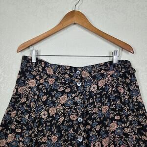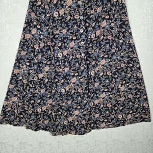 VTG Venezia Maxi Skirt Blue Pink Multi Floral Half Button Front Boho
