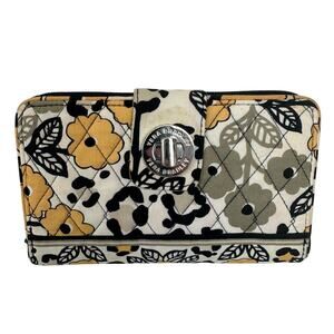 Excellent condition, Vintage Vera Bradley diamond quilted cotton checkbook cover in the retired Provence pattern features a vibrant mix of French-inspired motifs including olives and geometric medallions. Crafted from signature quilted fabric, this slim accessory includes a scalloped flap closure and a main compartment designed to hold a standard checkbook, photos, documents, ephemera, etc.