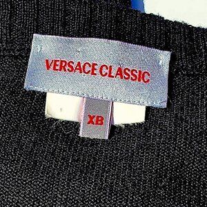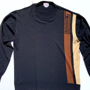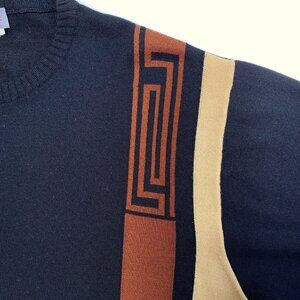 VTG Versace Classic Men’s Crewneck Sweater Wool Blk w/Brown Greek Key Logo Sz XB