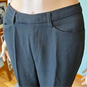 These vintage Vertigo of Paris dress pants were made in France. 1” cuffs, front creases, front slant pockets. 109% polyester, fabric has a crepe texture. Dry clean. Note: this is a vintage item and the size runs small so pay attention to the measurements below. Perfect pants for career wear, night out.