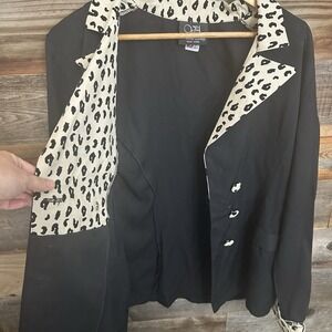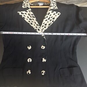 VTG Victoria Ashley Black Double Breasted Blazer 9/10 with Cheetah Collar Cuffs