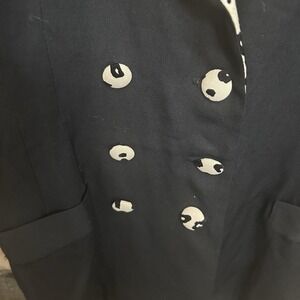 This ladies, Victoria Ashley black double breasted button down blazer with cheetah collar and cuffs is a size 9/10. It is vintage and in good preowned condition. Please see photos as they are part of the description and show the wear and condition of the jacket.