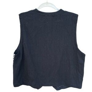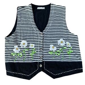 VTG Victoria Jones Kitschy Striped Daisy Vest Black White Embroidered Teacher