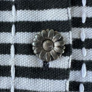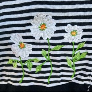 Vintage Victoria Jones Kitschy Striped Embroidered Vest. Black and White stripes with White contrast stitching. Embroidered daisy pattern, daisy buttons. Adorable! Teacher core, kitschy and quirky.