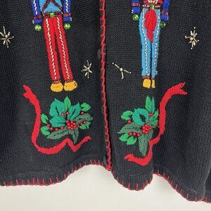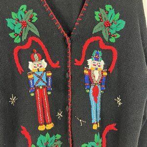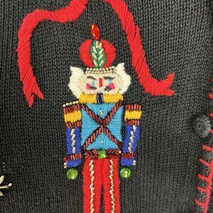 VTG Victoria Jones Nutcracker Cardigan Christmas Sweater sz L Beaded Embroidery
