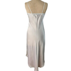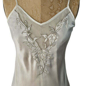Elegant bias cut nightgown has mesh inset embellished with silver metallic thread and pearls. Straps have been altered to shorten them but may easily be reversed.