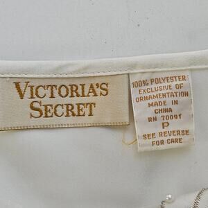 Vintage two piece set Victoria's Secret Gold Label white satin slip nightgown and quilted bed jacket are size Small.