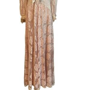VTG. Victorian Princess Robe Womens M Lace Plunge Chiffon Coquette Fairy Renni