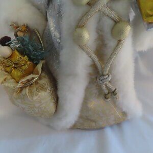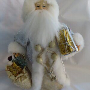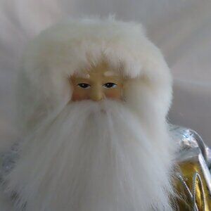 VTG Victorian Santa Claus Tree Topper Silver and Gold Decorations outfit 13" T