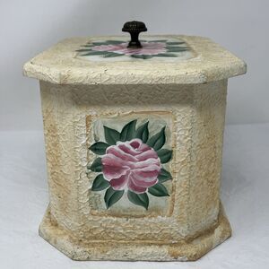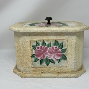 VTG Victorian Style Rose Shabby Chic Wooden Trinket Box Chest Cottagecore Granny