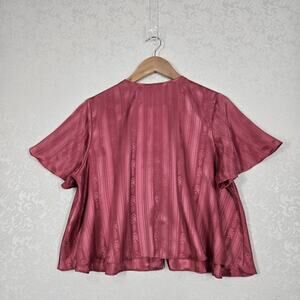 VTG Victoria's Secret Gold Label Cropped Top S Pink Coral Button Front Flare Sleeve