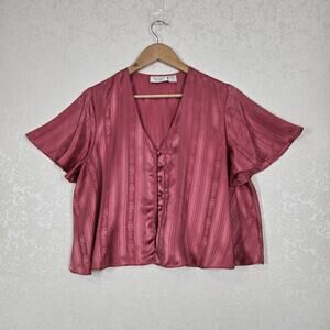 VTG Victoria's Secret Gold Label Cropped Top S Pink Coral Button Front Flare Slv