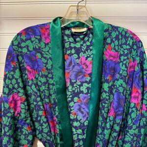 VTG Victoria’s Secret Gold Label Floral Satin Wrap Robe One Size