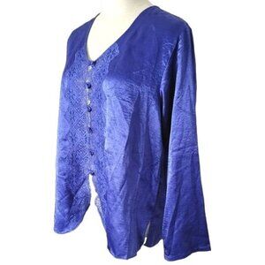 vnt retro dainty ditsy feminine satic silky flowy sissy lightweight classic pj top button up colorful blue violet purple lace lacy
