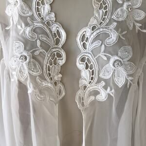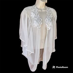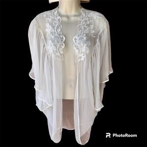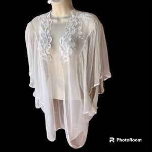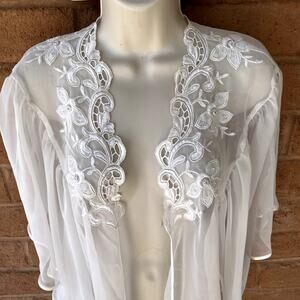 VTG Victoria's Secret Gold Label Sheer Chiffon Lace Open Mini Robe Cream OS