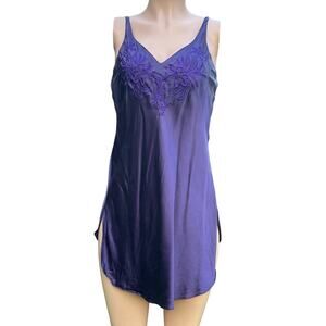 VTG Victoria's Secret Gold Label Silk Floral Embroidered Slip Dress Purple Small