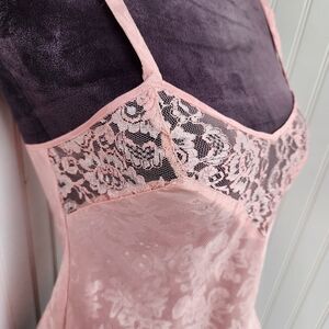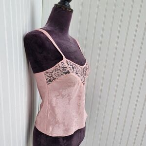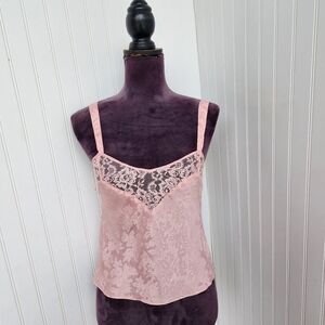 VTG Victorias Secret Pink Jacquard Cami Top Satin Gold Label Strappy Sz P XS