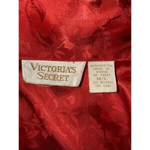 VTG Victorias Secret Red Floral Satin Robe M/L Korea Silky Wrap Belted Lounge