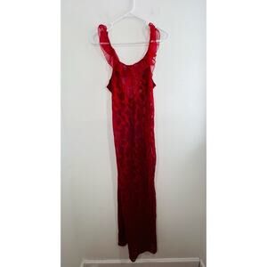 VTG Victoria’s Secret Red Lace Low Back Ruffle Maxi Dress Gold Label Small