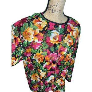 VTG Victoria’s Secret Women Multicolor Floral Sheer Button-Up Shacket Jacket M