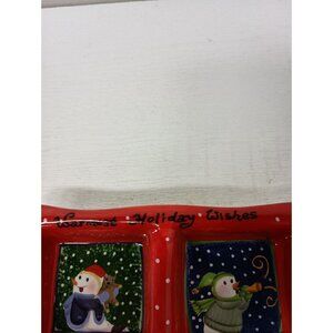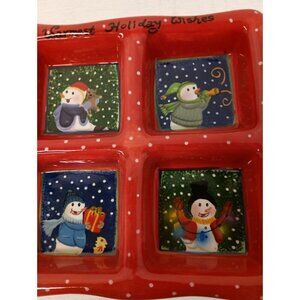 VTG Vigor Snowman Serving Appetizer Platter Ceramic Four Compartment Christmas