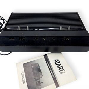 Level up your retro collection with this classic Atari 2600 (CX-2600A 4-Switch "Darth Vader" style) Video Computer System! This is a beautifully preserved piece of gaming history that includes the console, original power adapter, classic joystick controller, and the original owner's manual. Perfect for retro gamers looking for a unique vintage display piece. The manual alone is a fantastic collector's item!