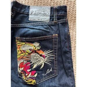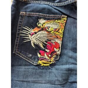 VTG Vintage 2010s Ed Hardy Embroidered Tiger Denim Shorts 36