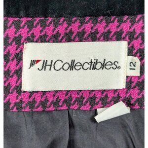 VTG Vintage JH Collectibles Pink Houndstooth 100% Wool Blazer 80s Velvet 12